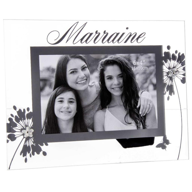 Très joli cadre en verre marraine. Nous vous proposons de graver un prénom et une date sur la base du cadre.