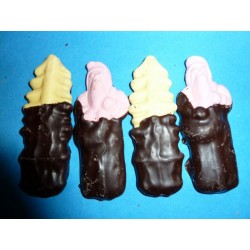 Guimauve de Noël mi-chocolatée grand modèle. Dimension : 9 cm