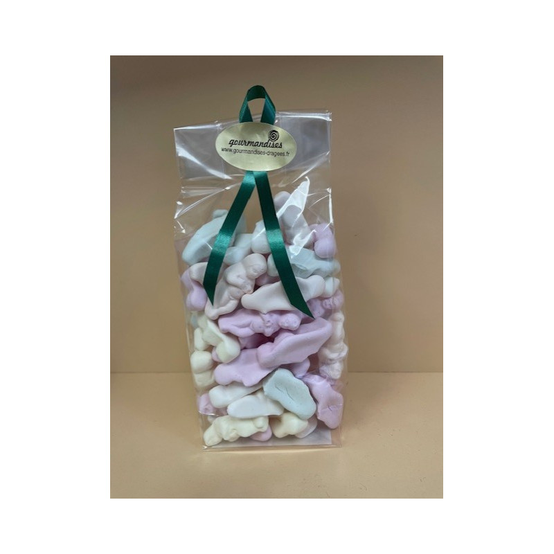 Les petits jésus en sucre, appelés aussi bébé soufflage, comme dans le temps, sont présentés dans un joli sachet L'ensemble pèse 200 g.