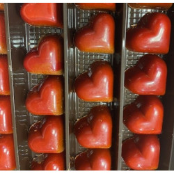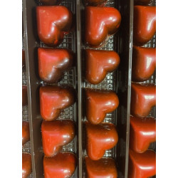 Pour toutes occasions, ces délicieux coeurs en chocolat sont d'une extrême finesse. Ils sont fourrés noisette, sucre et beurre de cacao. Ces coeurs sont fabriqués toute l'année. Ces jolis coeurs en chocolat au lait et/ou noir sont vendus pour la St Valentin ou pour toutes occasions.