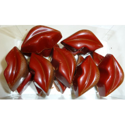 Ce chocolat en forme de lèvres, appelé bisous est composé de praliné noisette et d'une délicieuse amande grillée.