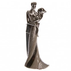Magnifique couple de mariés moderne argentés qui mesure 11 cm de haut. La bonbonnière est composée avec 2 tulles (dont un argenté et un blanc brillant) et de 20 g de dragées haut de gamme.